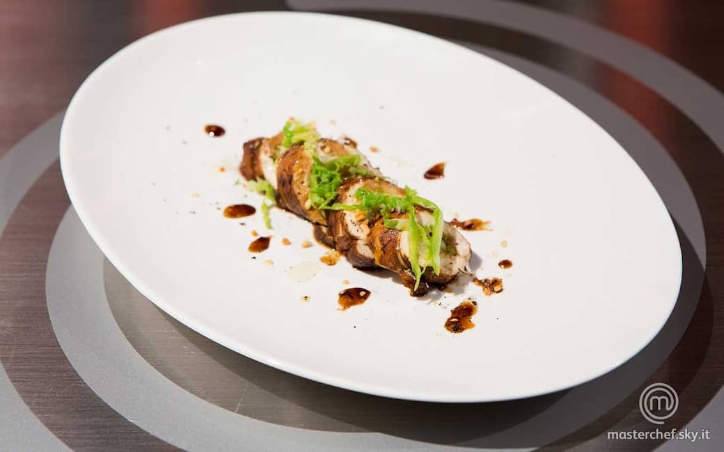 Distribuire sul fondo dei piatti la riduzione al caffè, adagiare sopra i rollé tagliati trasversalmente e condire con qualche goccia sparsa di riduzione al caffè, miele, una grattugiata di pecorino e la granella di nocciole. Completare con la verza a julienne, una spolverata di pepe e un filo d’olio.