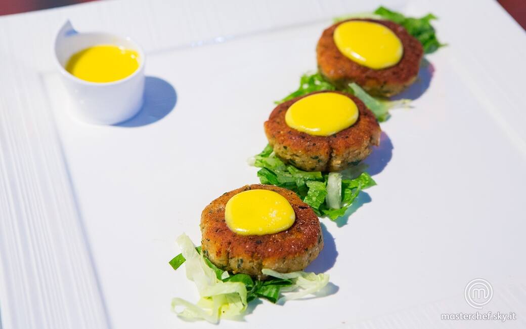 Formare 12 piccole polpette schiacciate con il composto di polpa di granchio. Friggerle, poche alla volta, in poco olio di semi molto caldo fino a dorare entrambi i lati.