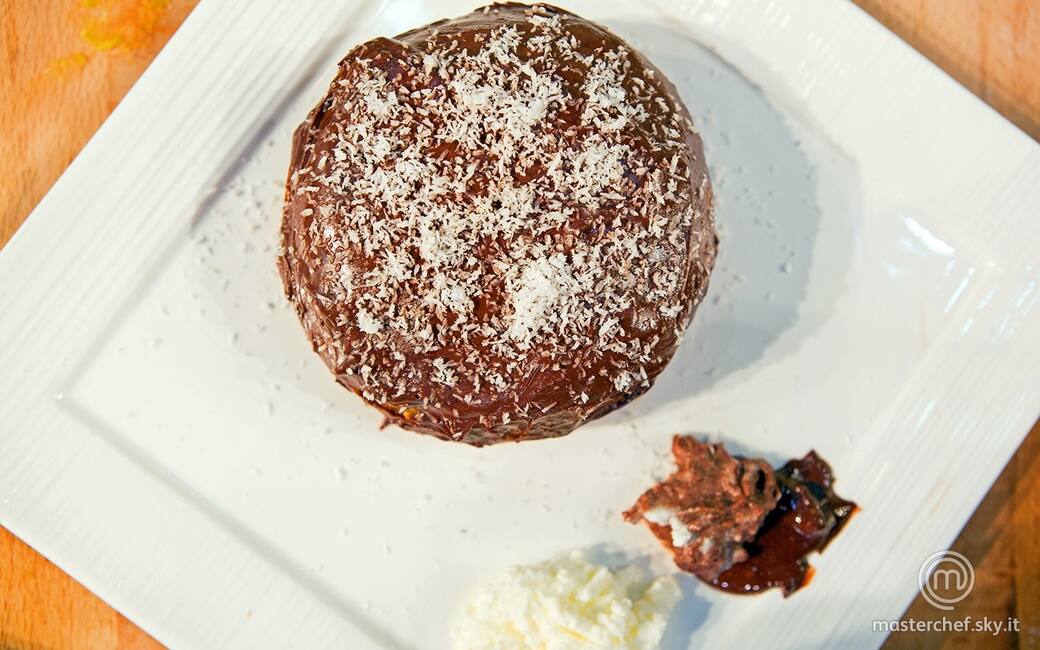 Mescolare delicatamente parte della crema al cioccolato rimasta con un po' di panna montata. Cospargere i tortini con la farina di cocco e adagiarli nei piatti. Appoggiare di lato, come fossero le salse di accompagnamento per un hamburger, la crema di cioccolato, la panna montata liscia e quella al cioccolato. Raffreddare bene in frigorifero prima di servire.