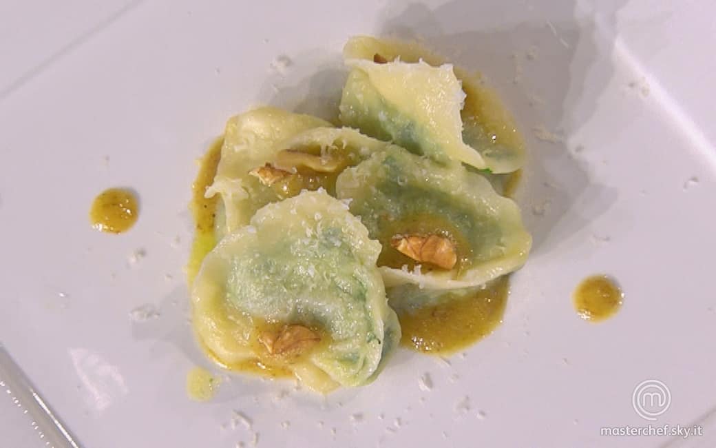 Pulire la borragine, sbollentarla per 2 minuti, scolarla e passarla in acqua e ghiaccio. Strizzarla bene e tritarla nel mixer insieme a un pizzico di sale, i tuorli, la ricotta setacciata, il parmigiano grattugiato e la maggiorana.