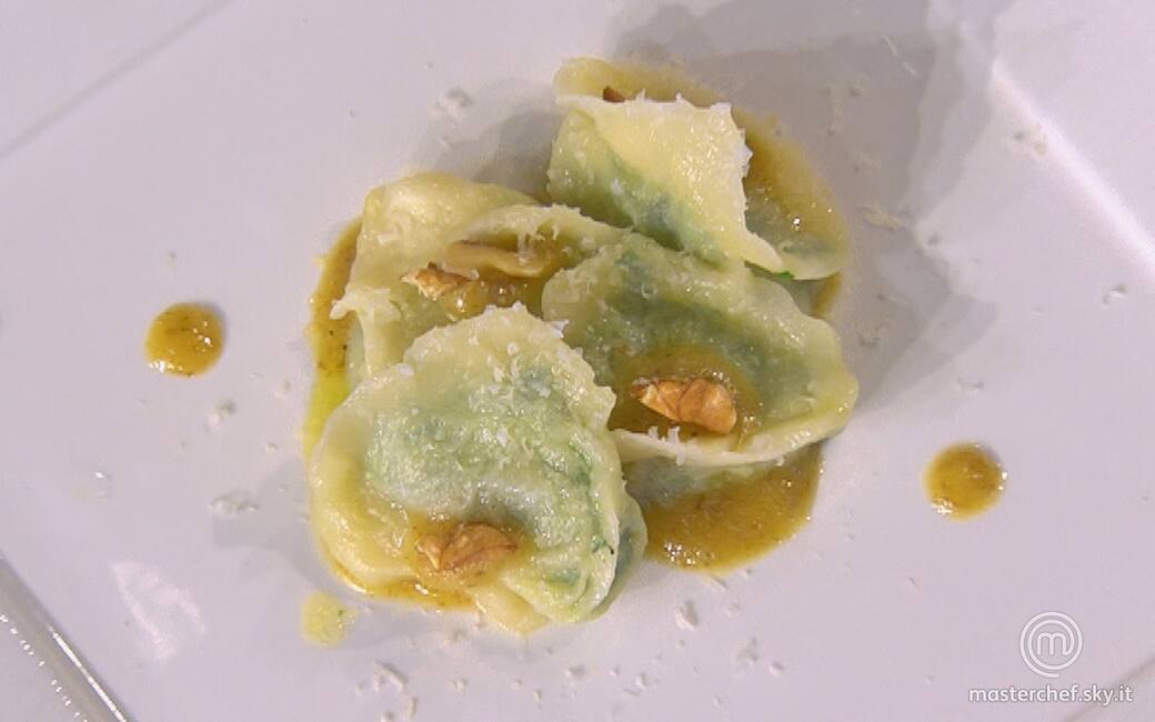 Versare la sala di noci sul fondo dei piatti e distribuirvi sopra i pansotti, completando con i gherigli di noce tostati.