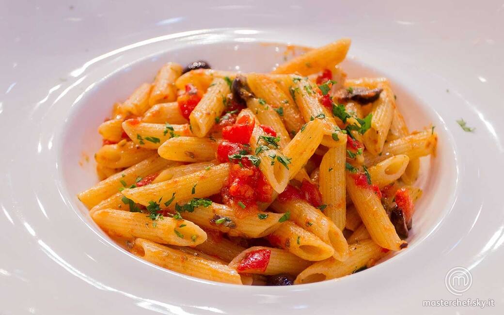 Scolare la pasta al dente, versarla nella padella con il sugo e saltare per qualche minuto. Distribuirla nei piatti e completare con il prezzemolo tritato.