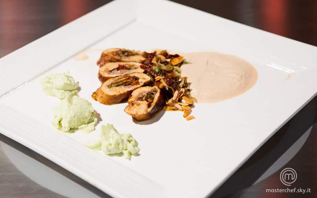 Tenere da parte metà del composto di carciofi e spalmare il resto sul petto di pollo, quindi avvolgerlo aiutandosi con la pellicola ottenendo un rollé. Immergerlo per un minuto in una pentola con abbondante acqua in ebollizione.