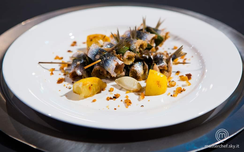 Riempire le sarde con il ripieno, arrotolarle e cuocerle per circa 10 minuti in forno a 220°C.