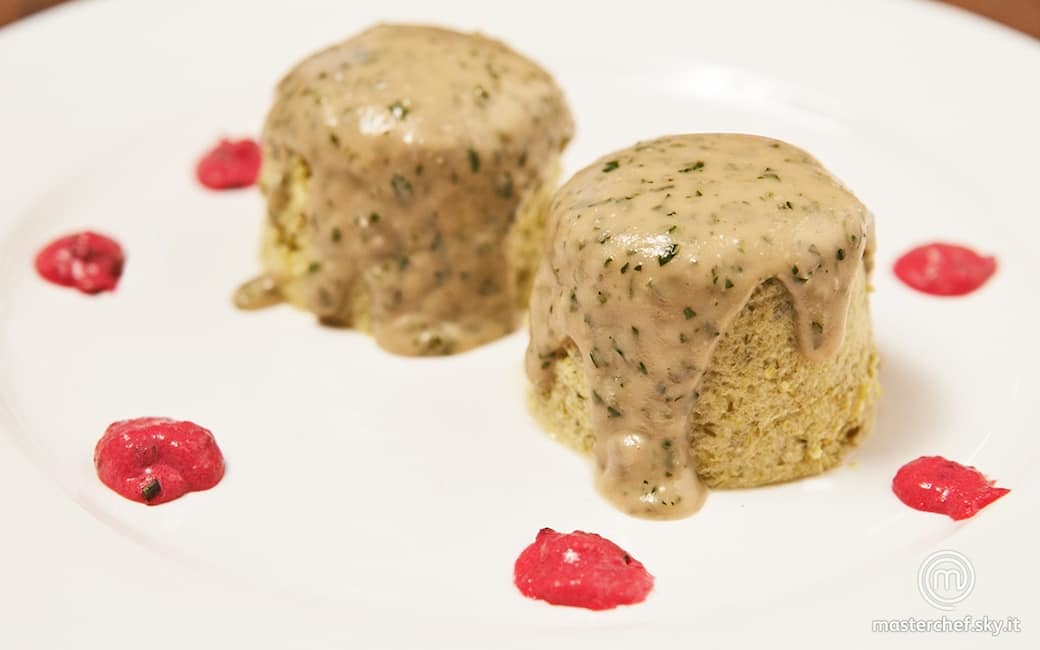 Sfornare gli sformatini e lasciarli raffreddare per qualche minuto. Sformarli delicatamente e adagiarli nei piatti. Versare sopra gli sformatini la crema di gorgonzola e completare con la salsa agrodolce sui lati.