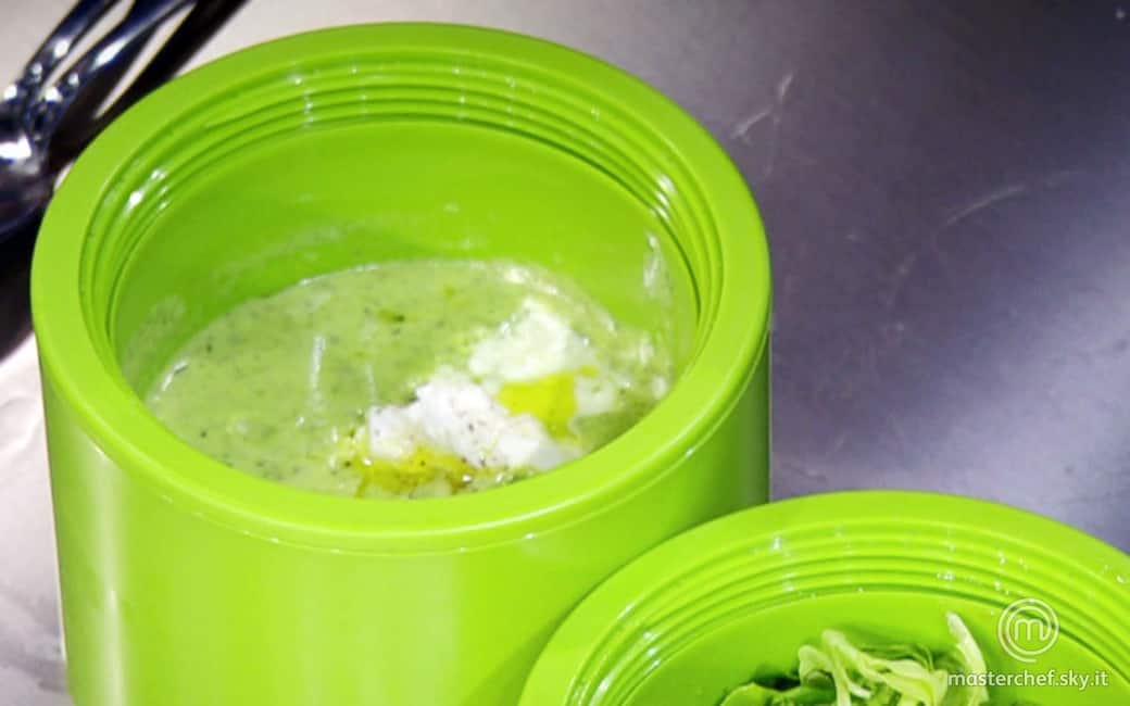 Scolare le zucchine. Frullare con il frullatore ad immersione aggiungendo olio evo e acqua di cottura delle zucchine. Regolare di sale e pepe.