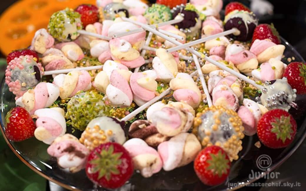 Sciogliere a bagnomaria il cioccolato, immergervi un’estremita dei bastoncini e infilzarli nelle palline appena realizzate. immergere le palline nel cioccolato fuso, fare colare il cioccolato in eccesso e aggiungere le granelle a piacimento. farli asciugare e raffreddare in frigorifero infilzando i bastoncini su una base di polistirolo.