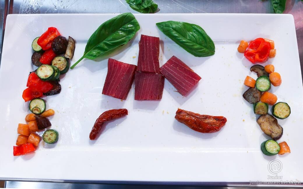 Carpaccio di prosciutto di tonno con primavera di verdure