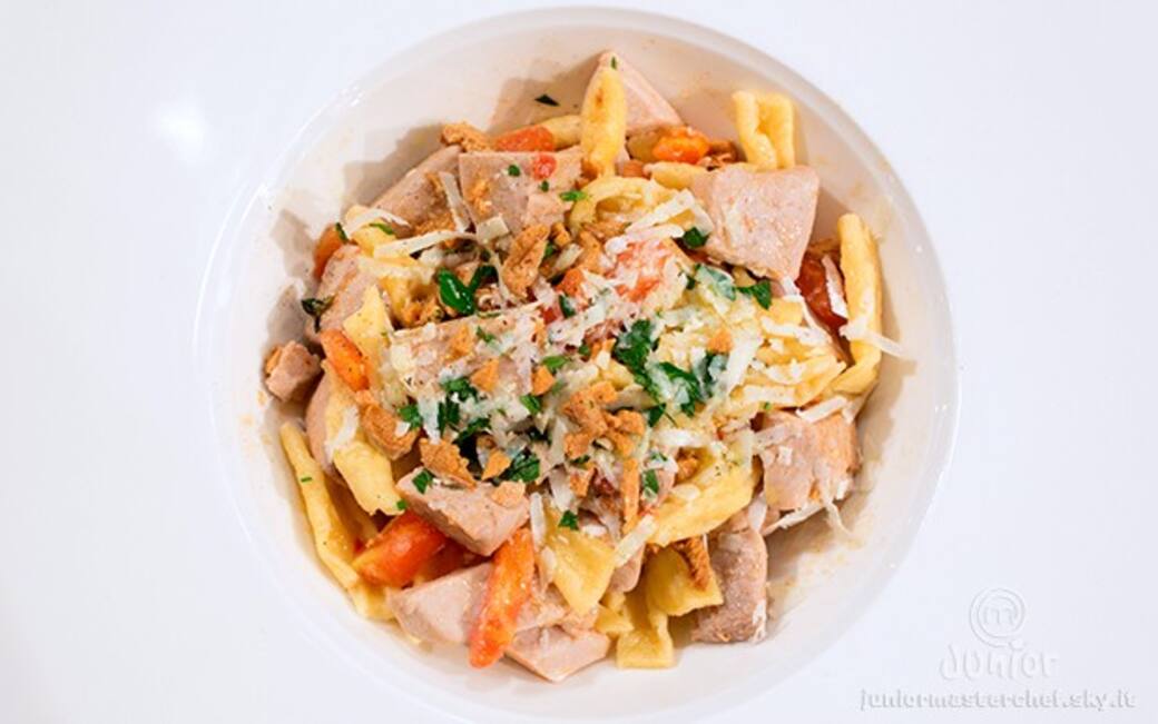 Cavatelli al tonno in corsa con bottarga e ricotta al forno