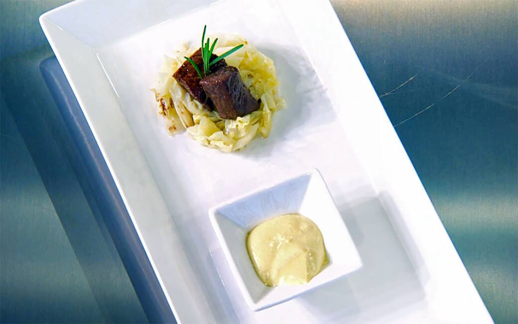 Cervo scottato con verza e salsa alla senape