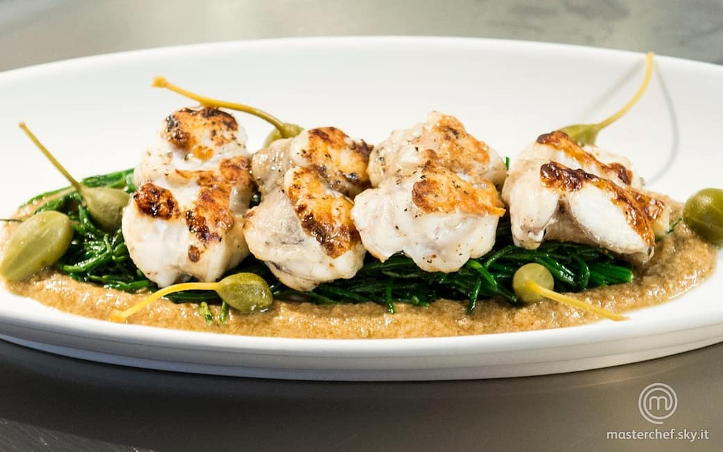 Coda di rospo in salsa di noci e capperi