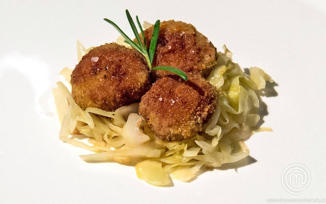 Impiattare disponendo un letto di crauti al porto e disporre 3 cotolette di palle del toro per porzione. aggiustare di sale e pepe e decorare con un rametto di rosmarino.