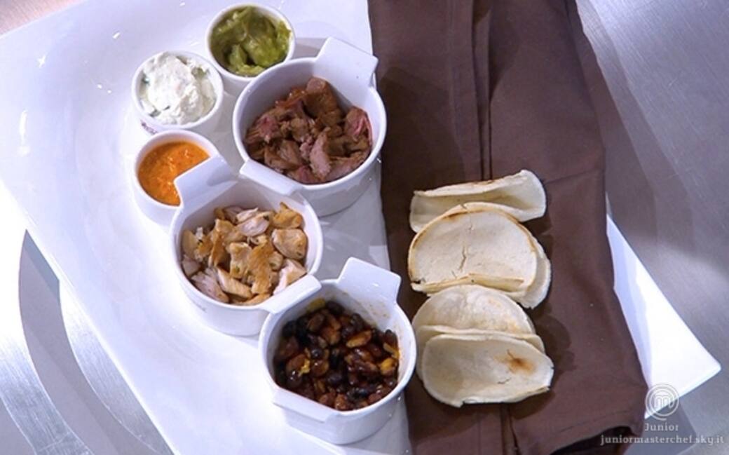 Farcire le tortillas con la carne e impiattare le salse in ciotoline diverse.