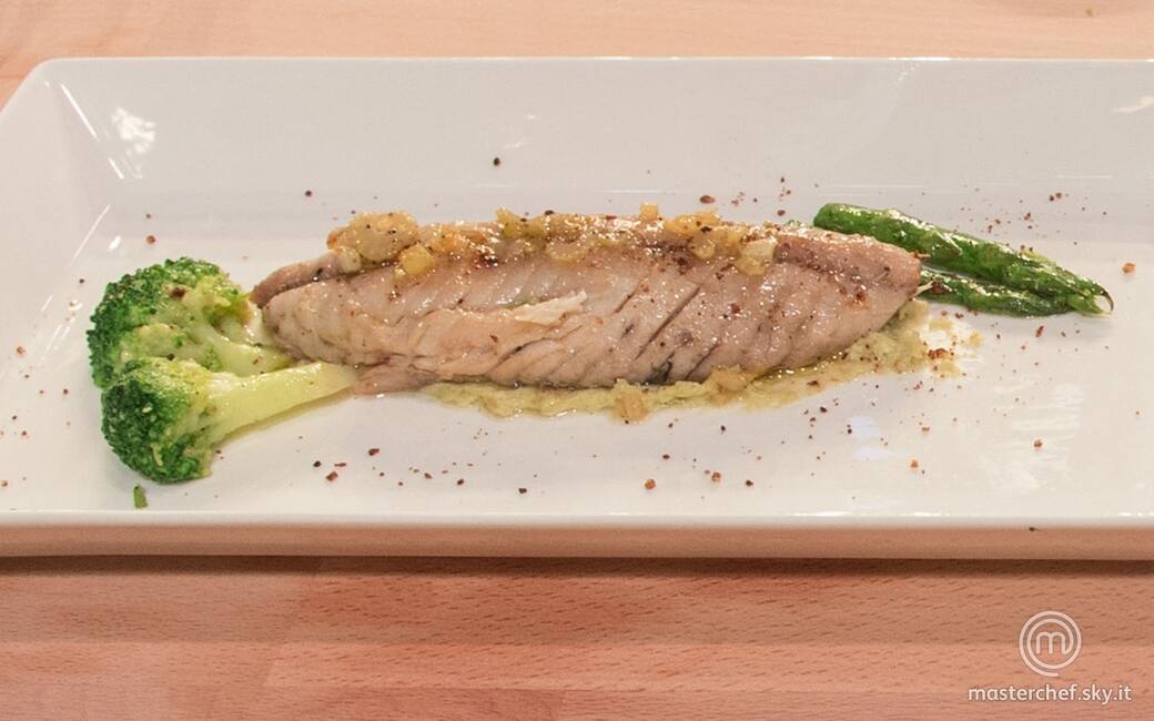 Tagliare sottilmente due gambi di sedano e soffriggerli in padella con un filo di olio evo. Scottare i filetti prima sul lato della pelle e poi sull’altro e sfumare col vino bianco. Completare la cottura.