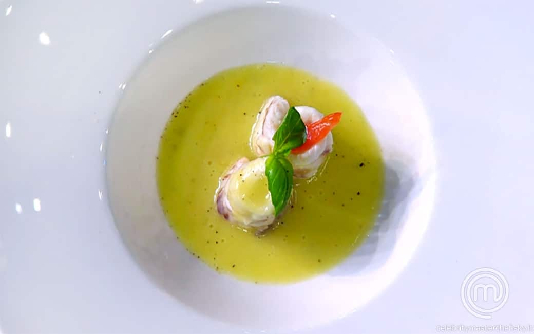 Impiattare disponendo uno specchio di emulsione al vino bianco, adagiando gli involtini di sogliola e decorando con una foglia di basilico, una macinata di pepe e un filetto di pomodoro.