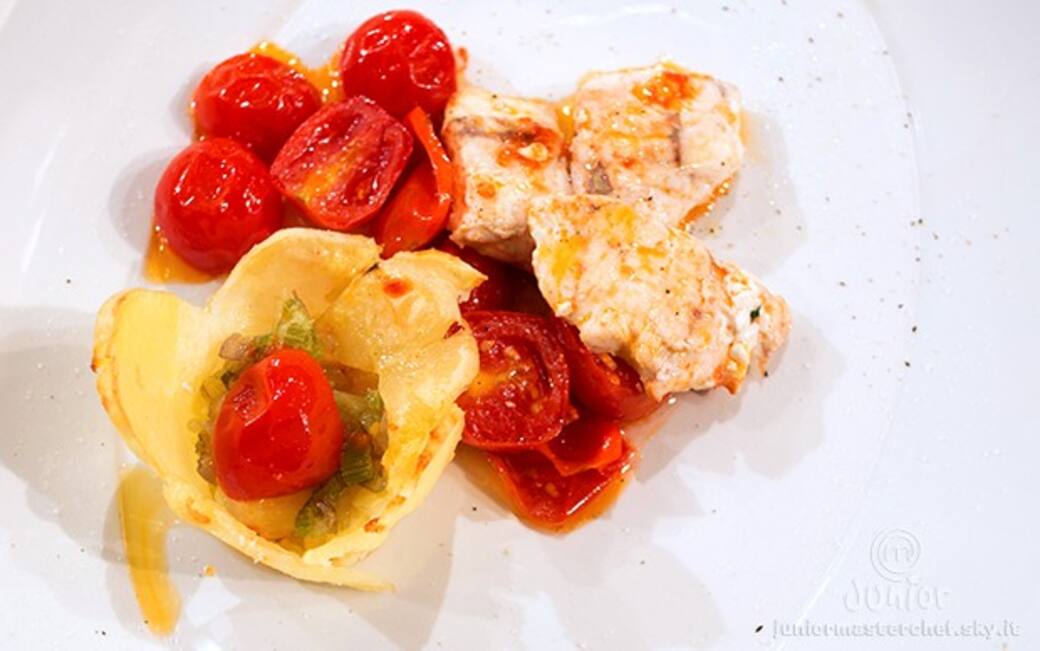 Tagliare ogni filetto di gallinella in 3 pezzi e rimuovere la lisca. far cuocere in una casseruola con aglio, olio e pomodorini tagliati a meta.