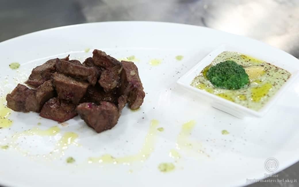 Una volta pronta la vellutata, cuocere il fegato a fuoco vivo per una decina di minuti al massimo in una padella con un cucchiaio di olio evo. infine passare il fegato nella cipolla fatta stufare e cuocere per gli ultimi 5 minuti.