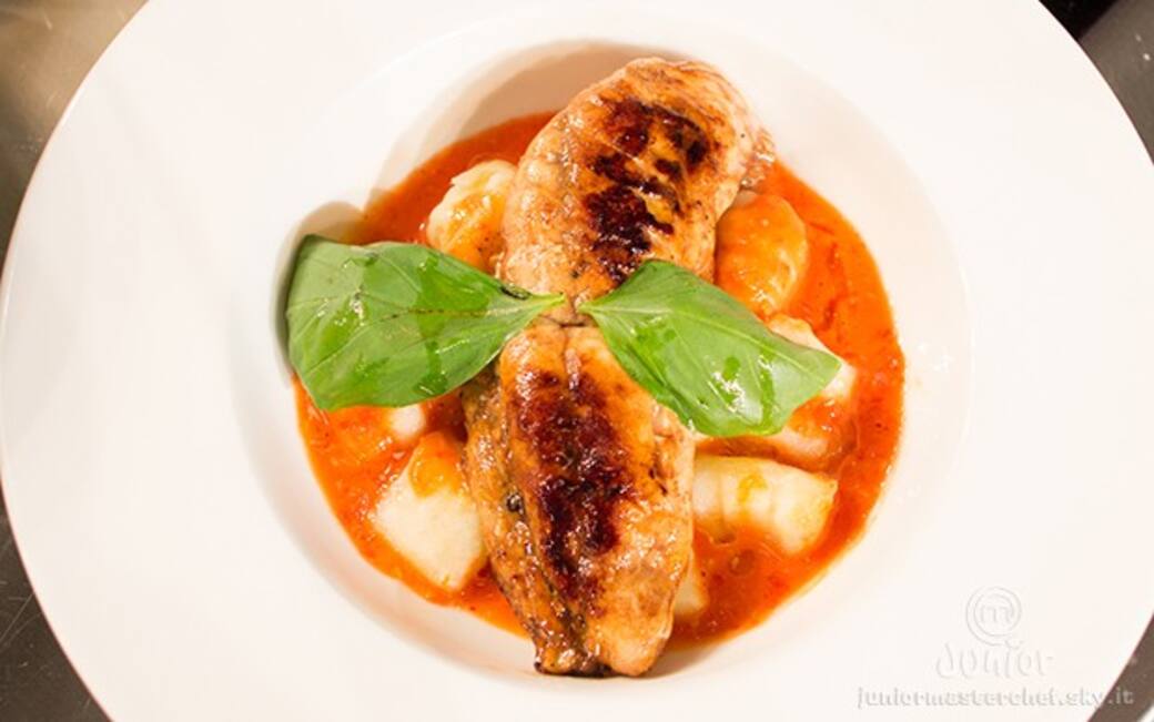 Gnocchi con salsa di pomodorini e gallinella di mare