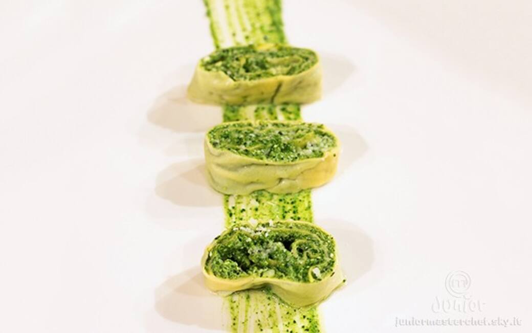 In una terrina mescolare la ricotta, l’uovo, il parmigiano, gli spinaci sbollentati e frullati al mixer. ottenere un impasto omogeneo, regolare di sale e pepe.