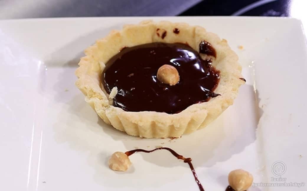 Mettere la frolla in una tortiera piccola, coprire con la carta forno appoggiando dei ceci, in modo da cuocere la crostata senza che la pasta si gonfi. mettere in forno a 200° finche la pasta non sara dorata. togliere dallo stampo, farcire con la ganache e decorare con i lamponi e le nocciole.
