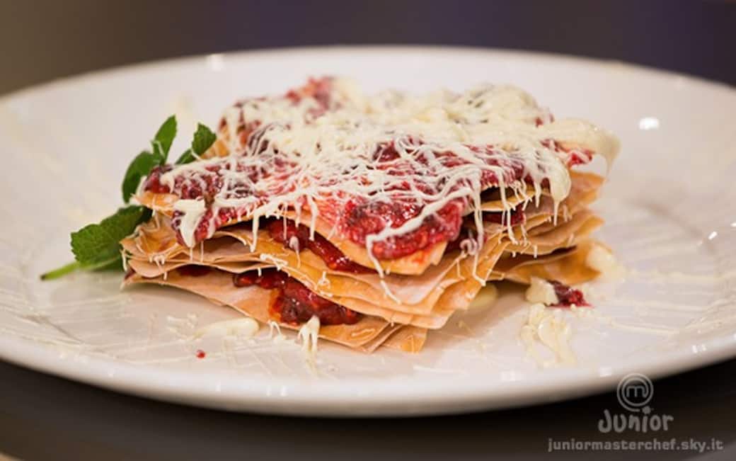 Impiattare mettendo alla base la pasta fillo, aggiungervi sopra il ragu e la besciamella ottenuta facendo sciogliere del cioccolato bianco. ripetere realizzando piu strati e le lasagne sono pronte!