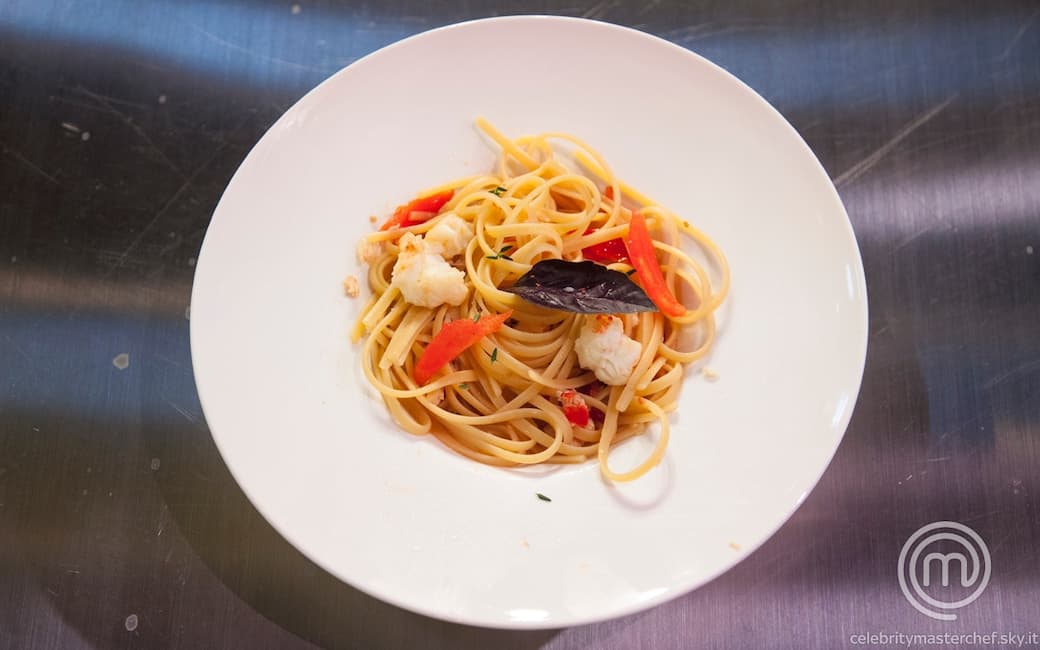 Lasciar appassire i pomodorini nella pentola dove sono stati rosolati gli astici a fuoco lento per 5- 10 minuti. nel frattempo portare a ebollizione abbondante acqua salata e cuocere le linguine.