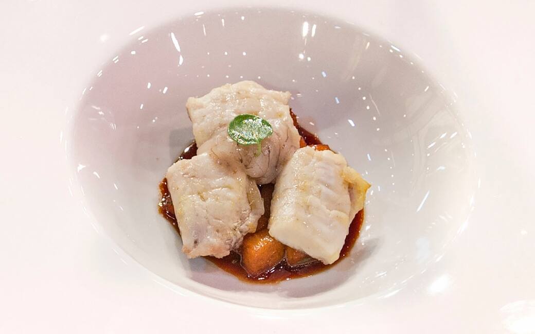 Pulire, eviscerare e sfilettare il nasello. Lasciar marinare i filetti in una boule con un filo di aceto di mele, un cucchiaio di miele e qualche foglia di maggiorana. In un’altra boule disporre abbondante olio evo, la scorza grattugiata di mezzo limone, un piccolo pezzo di zenzero grattugiato, una presa di sale, qualche foglia di timo e la polpa delle cicale di mare, precedentemente pulite e private del carapace, per 10-15 minuti.