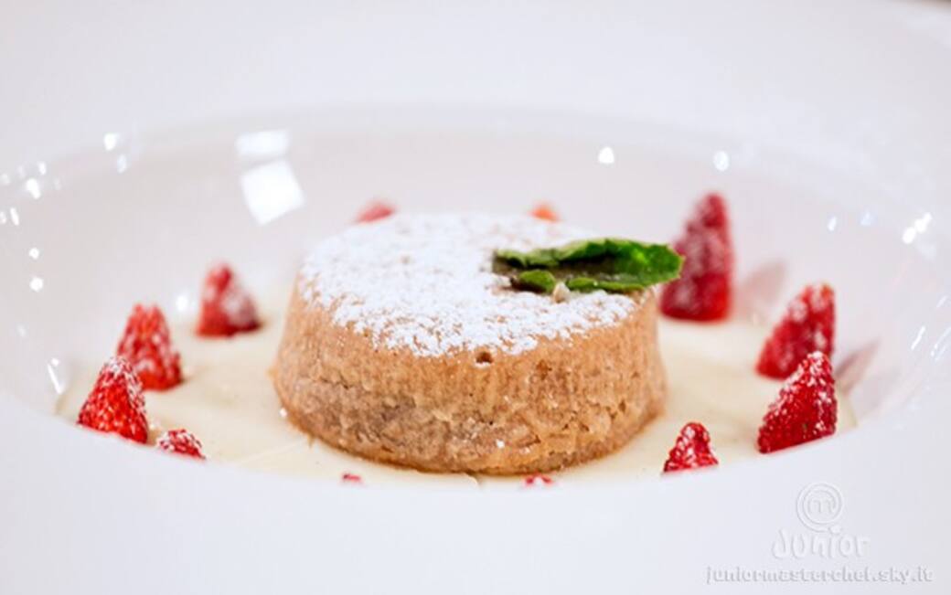 Per la mini caprese: mescolare la farina di mandorle, il burro, lo zucchero, le uova, il cioccolato fondente, il cacao amaro, un pizzico di sale e alcune fragoline di bosco. inserire in alcuni stampi di silicone cilindrici e infornare a 170° per 15 minuti.