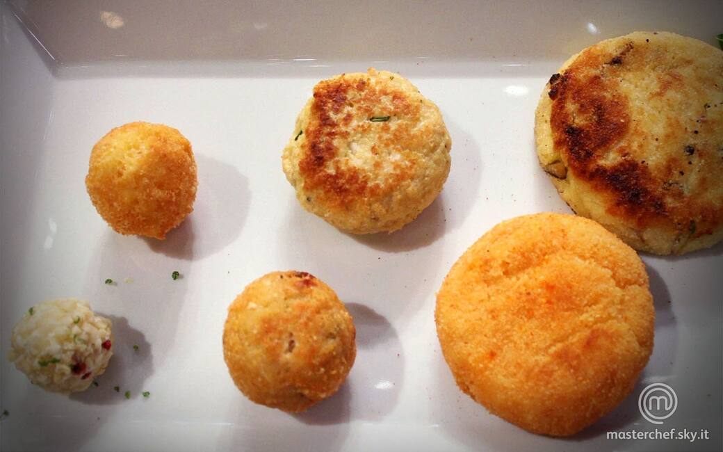 Mescolare la provola tagliata a dadini, la robiola rimasta, le patate lesse, il Parmigiano, la paprika affumicata, un pizzico di sale, una macinata di pepe e poco uovo sbattuto. Aggiungere farina di riso se l’impasto risulta troppo umido. Impanare nel pangrattato e friggere in olio di semi fino a doratura. Finire la cottura 5 minuti in forno a 180 °C.
