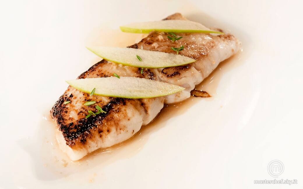 Impiattare disponendo l’involtino al centro del piatto, adagiarvi sopra tre fettine di mela e poco aneto spezzettato con le mani. Aggiustare di sale e pepe e irrorare con poco fondo di cottura.