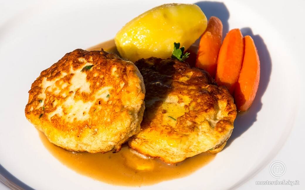 Aggiustare di sale e pepe e servire le fishcakes con 2-3 carote saltate, 2-3 patate, la salsa sul fondo e una spolverata di prezzemolo.