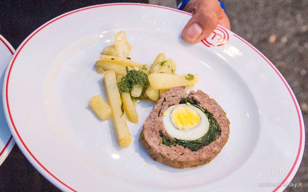 Stendere l’impasto di carne ad uno spessore di circa 1 cm su un foglio di carta forno e dandogli una forma rettangolare. Disporre gli spinaci, le fette di lardo e le uova all’estremità di un lato lungo e arrotolare formando un rotolo. Compattare le estremità e spostare il polpettone su un altro foglio di carta forno oleato, ripetendo l’operazione per saldare meglio la carne.