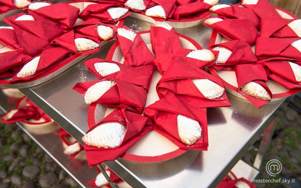Tagliare col coppapasta dei dischi dal diametro di circa 10 cm; al centro porre un cucchiaino di marmellata o mostarda. Richiudere i dischi come tortellini.