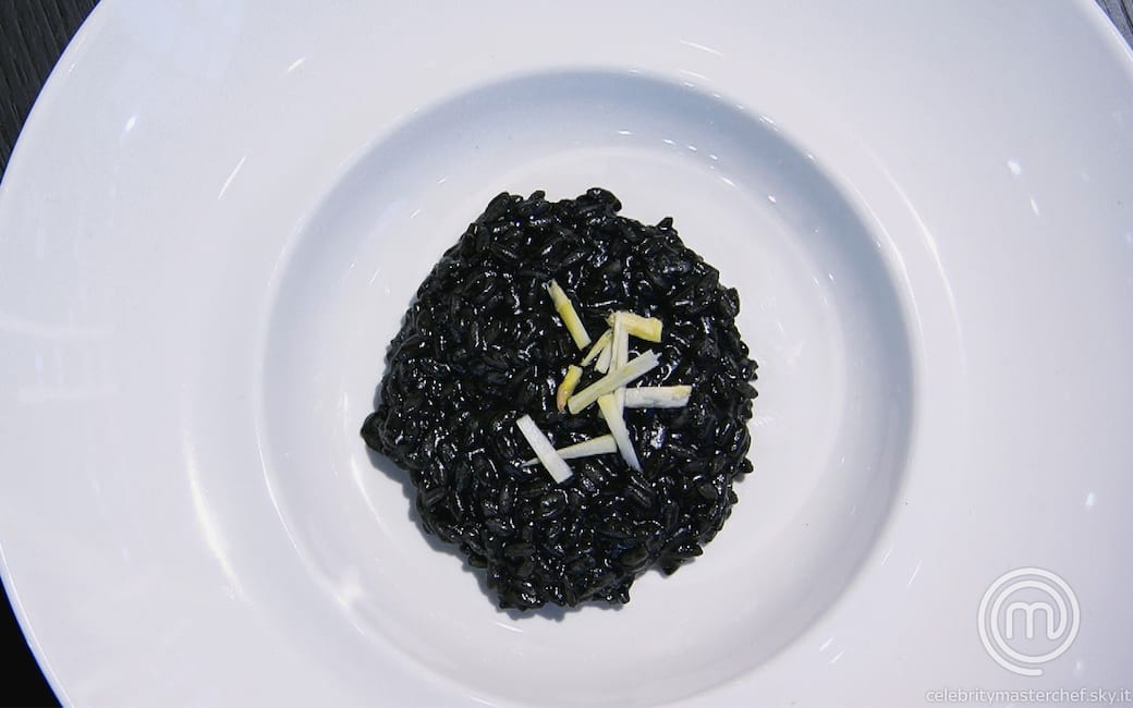 Poco prima che il risotto sia pronto, aggiungere il nero di seppia e mescolare bene. spegnere il fuoco e aggiungere un paio di cucchiai d’olio e il pecorino grattugiato. coprire e lasciare mantecare per circa 5 minuti.
