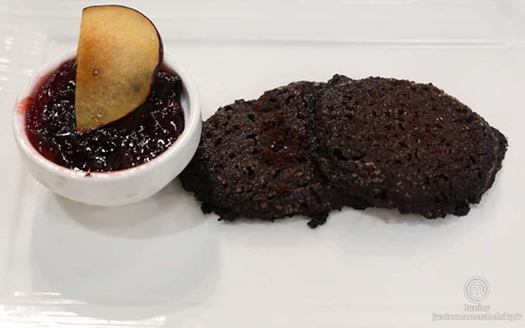 Tagliare il salame a fette spesse, metterle in forno ventilato a cuocere a 170° per 14 minuti. quando tutto e pronto impiattare.