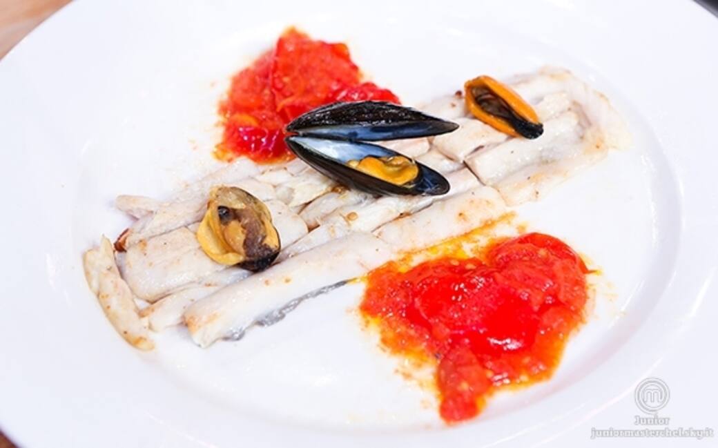 Appena le cozze si sono aperte aggiungere il pesce e farlo cuocere per altri due minuti e mezzo. impiattare e servire.