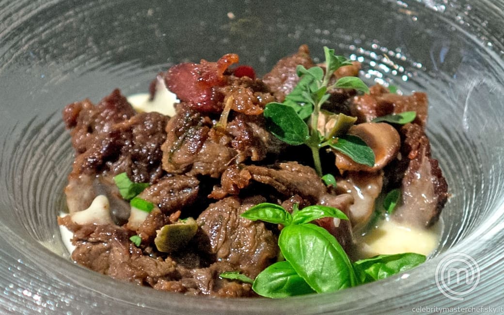 Spezzatino con crema di fagioli bianchi e crema di formaggio