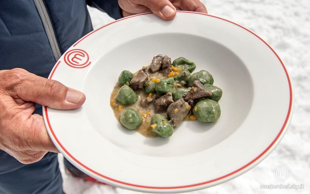Mettere a marinare la carne di ginepro con vino rosso e bacche di ginepro (la marinatura ideale sarebbe di due ore). Nel frattempo, portare a ebollizione l’acqua leggermente salata in una pentola, lessare gli spinaci per qualche minuto, scolarli bene e passarli al setaccio. Sminuzzare il pane e metterlo in ammollo nel latte, aggiungere le uova, la farina, gli spinaci e una presa di sale e lavorare il tutto fino ad ottenere un impasto omogeneo. Formare degli gnocchi grossi come una noce.