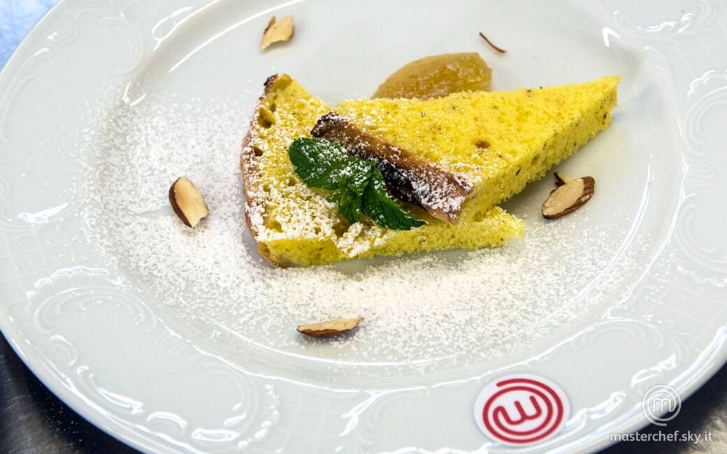 Versare l’impasto in una tortiera capiente e cospargere la superficie con la granella di mandorle. Cuocere per circa 45 controllando con l’ausilio di uno stecchino la cottura interna della torta.