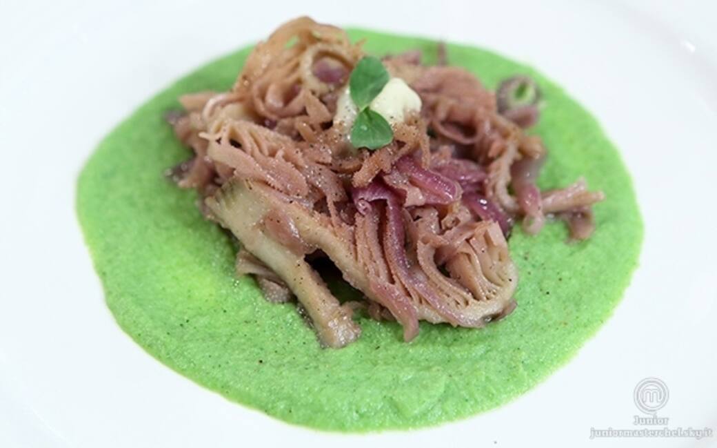 Trippa risottata alle cipolle su crema di broccoli