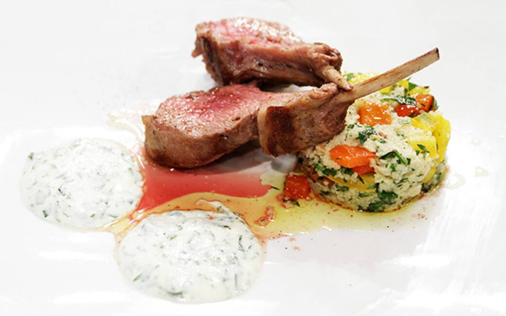 Strofinare il carre’ di agnello con l’aglio e cospargere con olio e senape. Salare e pepare. Far cuocere in padella sigillando tutti i lati. Finire la cottura in forno a 200 gradi con rosmarino e timo. Far riposare la carne per alcuni minuti prima di tagliarla.