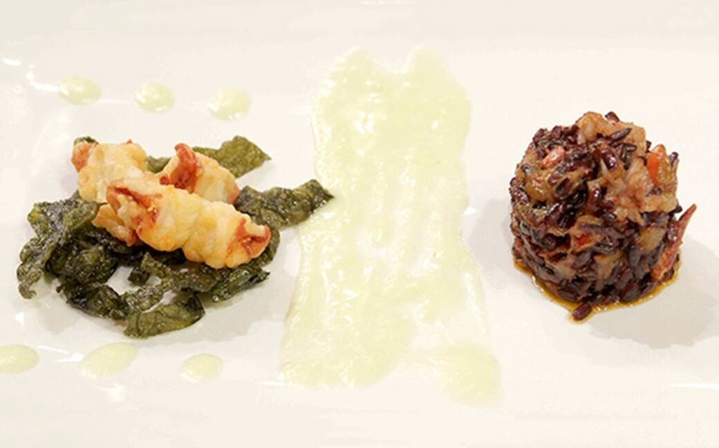 Immergere l'astice in una pentola d’acqua bollente. Fare riprendere il bollore e spegnere. Sgocciolarlo e togliere la polpa, il corallo e le chele spolpate e metterle da parte. Infarinare leggermente la polpa dell'astice a tocchetti e friggerla per qualche istante Far saltare le chele e una parte del corallo con il riso.