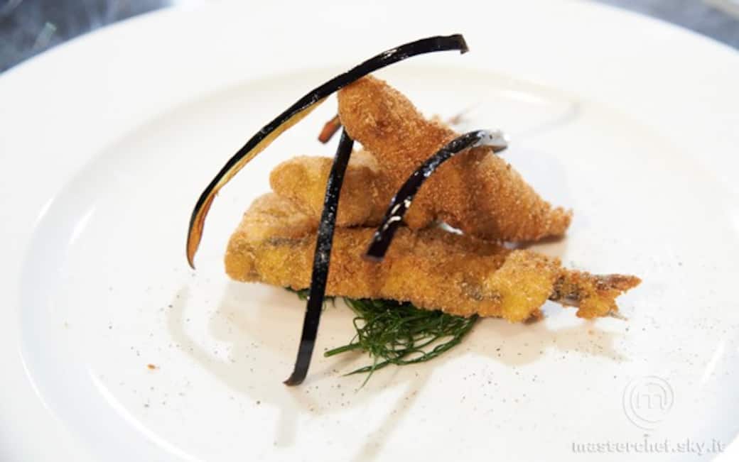 Togliere dal fuoco le melanzane e frullarle insieme alla ricotta salata e a un filo d’olio. Lasciar raffreddare il composto. Prendere le alici, metterci sopra il composto e chiuderle, passarle nell’uovo e poi nel pangrattato. Friggerle in abbondante olio bollente per 30/40 secondi. Friggere anche le bucce.