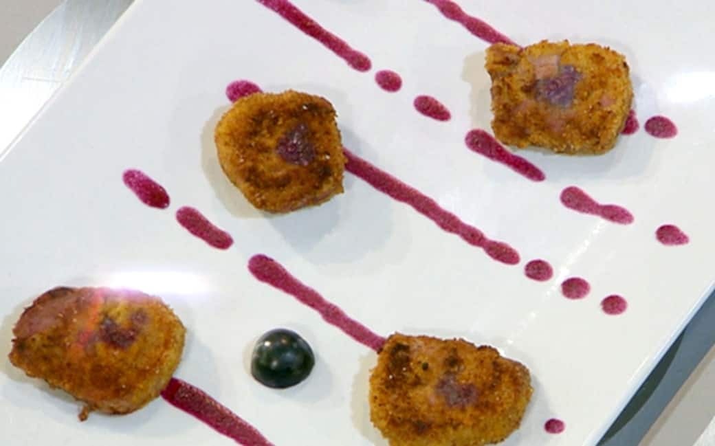 Tagliare l’uva nera e i mirtilli a pezzetti e metterli a cuocere in un pentolino con burro e zucchero per una decina di minuti. Quando la salsa sarà pronta, filtrarla e lasciarla riposare.