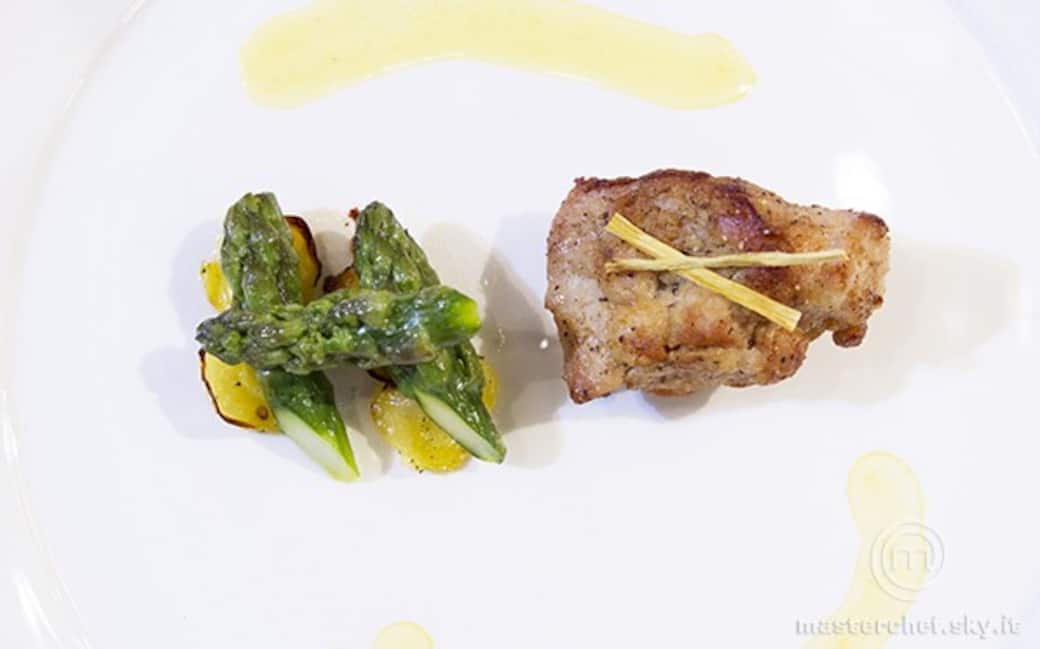 Impiattare: mettere al centro l’animella e poco sotto fare un letto di pomodorini confit, sopra i quali disporremo gli asparagi. Decorare con un pezzetto di liquirizia sopra l’animella.