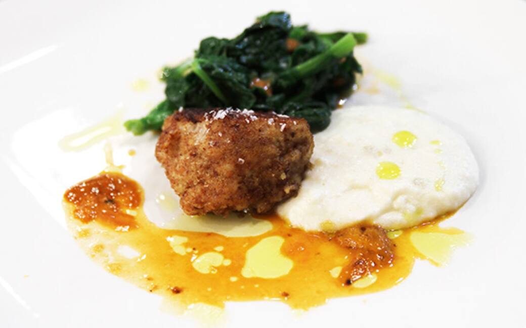 Scolare le animelle conservando l’acqua di cottura. Spellarle attentamente e tagliarle a pezzi da circa 40 gr. seguendo le venature delle ghiandole. Bagnare ogni pezzo nel court-bouillon e impanare nella mollica grattata di pan brioche tostato e mischiato con farina di noci macadamia. Dorare in padella con olio extravergine di oliva.