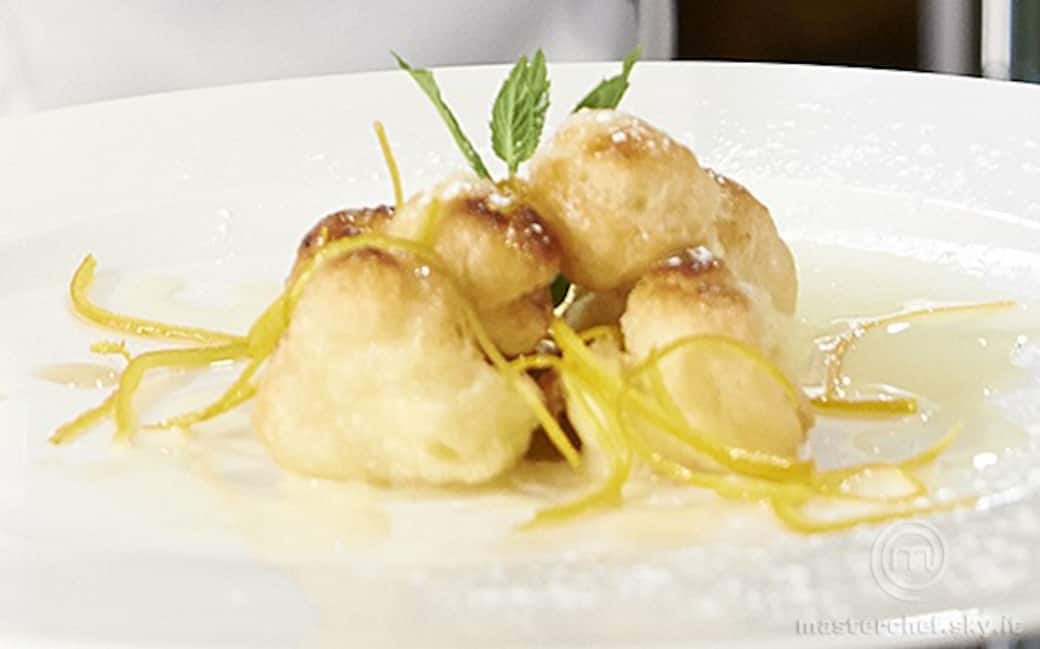 Prendere dei quadrati di carta forno, crearvi sopra delle piccole palline di bignè. Prendere una padella, metterla sul fuoco e versarvi abbondante olio evo. Nel frattempo che l’olio si scalda, tagliare la buccia d’arancia a julienne. Aggiungerla in una pentola a bollire con dell’acqua fredda e dello zucchero. Ripetere il procedimento 3 volte. Immergere i bignè nell’olio e con la ramina girarli continuamente fino a farli colorare. Aggiungervi anche della scorza d’arancia per aromatizzare l’olio.