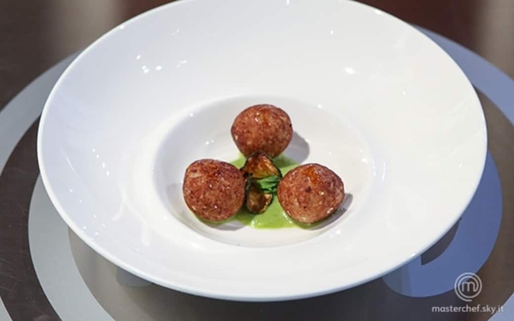 Servire il medaglione con la crema di patate, rafano e avocado, una grattugiata di rafano fresco e del lardo croccante, il tutto insieme a i cavoli saltati.
