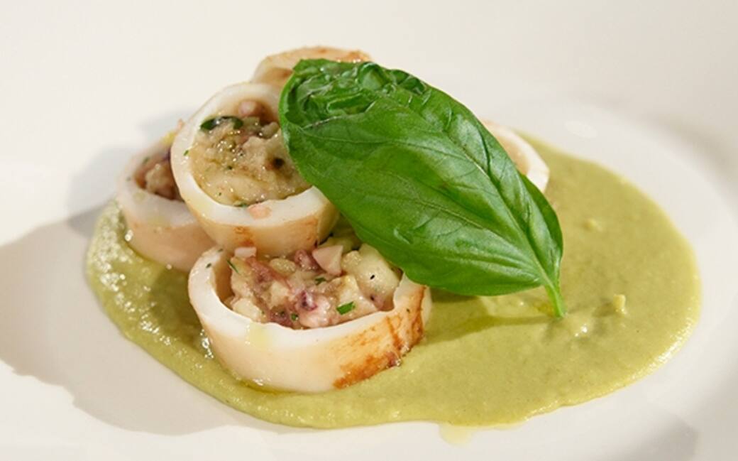 Unire ai calamari in padella la mollica di pane strizzata e le zucchine e continuare la cottura. Aggiungere la buccia di limone, il prezzemolo e il basilico. Farcire i calamari.
