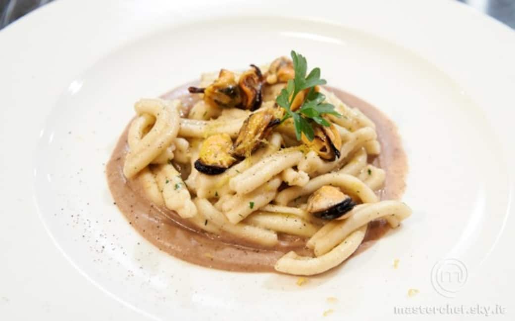 Caserecce con crema di fagioli e cozze